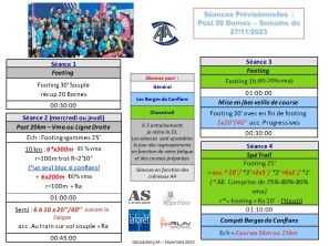 Comme je ne peux pas faire des plans pour toutes les courses (il y en a partout…) j’ai fait une programmation qui nous emmènera progressivement sur les 20 Bornes avec quelques courses club pour ceux qui le souhaitent.