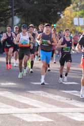 Le meneur d’allure des 3h30 était déjà loin, mais il était au-dessus de l'allure. J’ai remonté tous les meneurs d’allure 4h15 et autres, et j’ai rejoint celui des 3h30 seulement au 6ème km. Je suis resté quelques kilomètres derrière lui, puis je suis passé devant avec la championne de France M6. Nous avons papoté un peu.